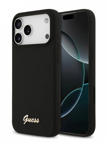 Накладка Guess для iPhone 17 Pro Liquid silicone Gold metal logo (MagSafe), Hard Black (GUHMP17LSMBSLK)