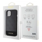 Накладка Guess для iPhone 15 PU 4G Bottom stripe Metal logo Hard (MagSafe), Black (GUHMP15SG4GLGR)