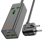 Сетевой фильтр Hoco AC21 3*USB-A, 1*USB-C, 4*розетки, 1.5м, Чёрный